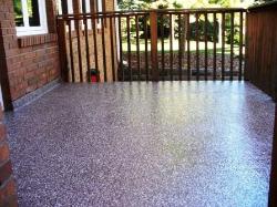 - FlorDek ™ Quartz—Durable polymer base coat filled with colored quartz granules or silica sand to